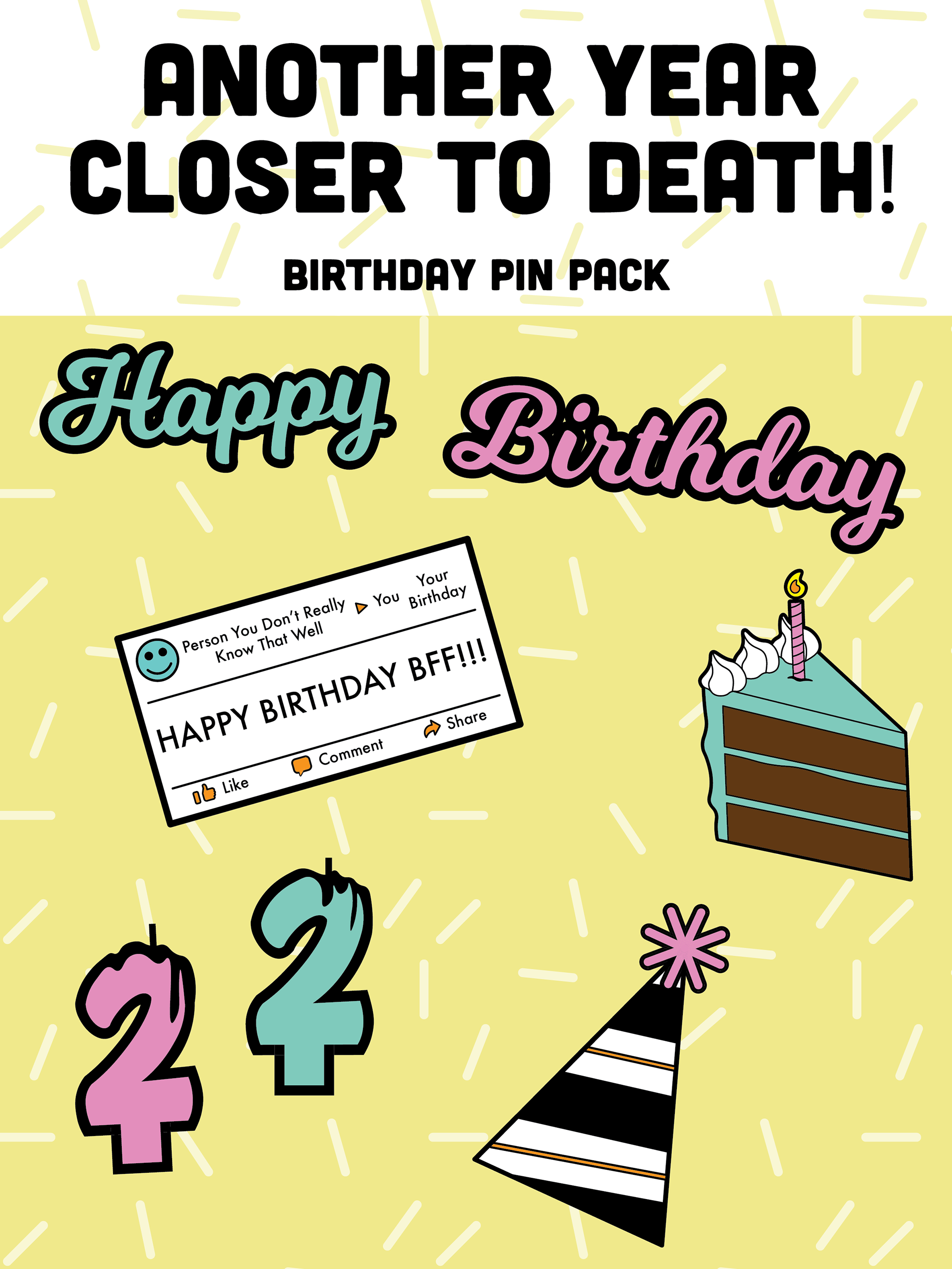 A fun and pessimistic take on a birthday in pack, Illustration